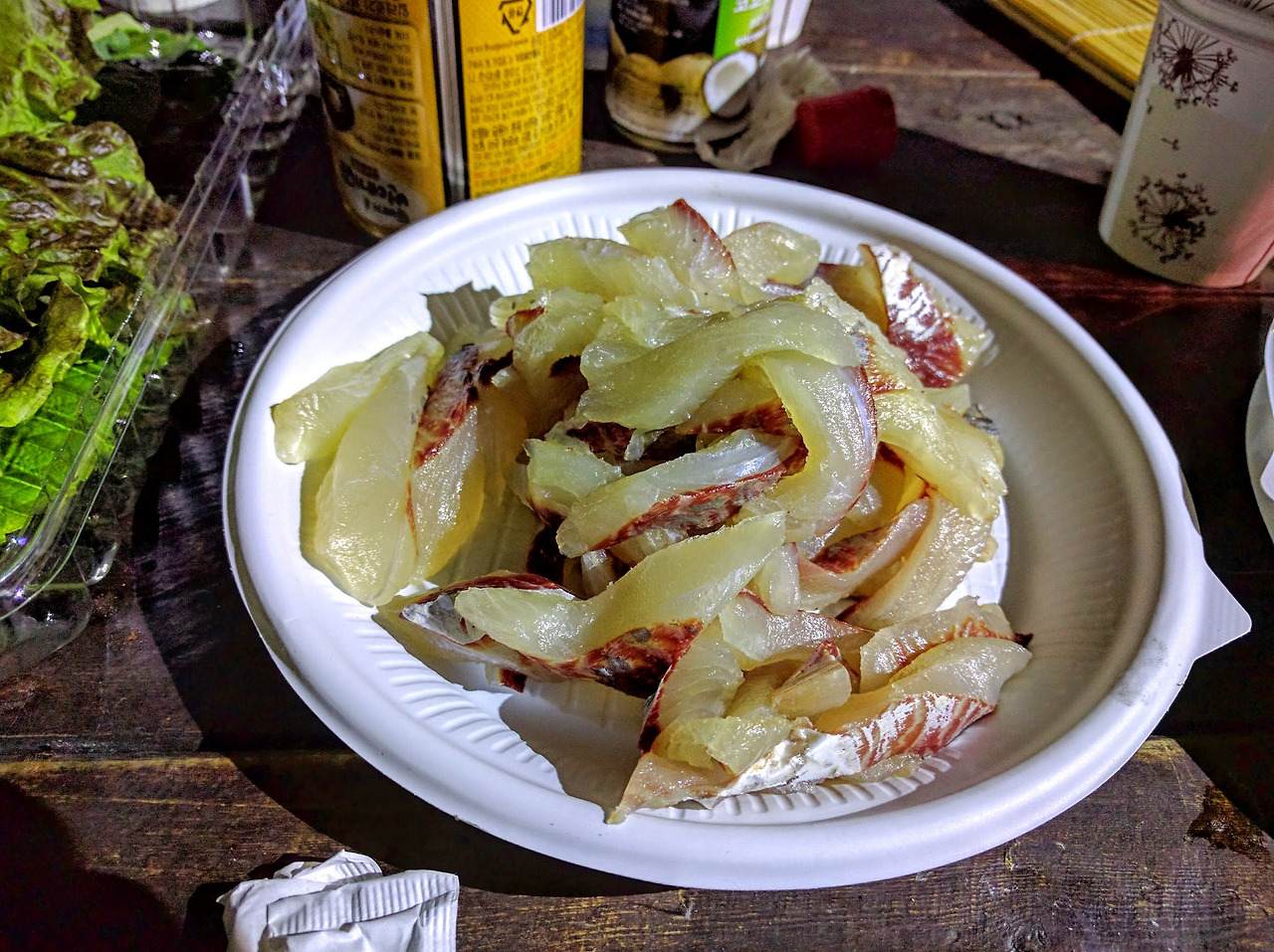 조리법이 잘못되었는진 모르겠지만, 살 자체가 퍽퍽한 편이라 그다지 맛있다는 느낌은 없었다.