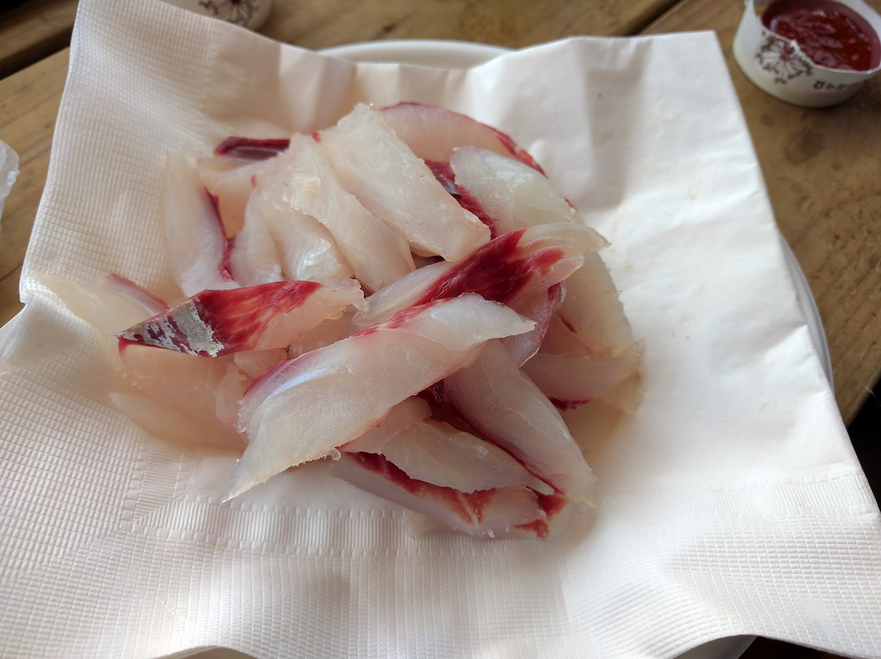 개인적인 느낌일 수 있는데, 민물과 바닷물을 오가는 물고기들은 대개 깊은 맛이 떨어지는 것 같다.(송어가 대표적) 하지만 초고추장을 듬뿍 발라 쌈을 싸 먹거나 야채와 함께 무침으로 먹는 생선회 중에 쫄깃함으론 단연 으뜸으로 쳐주고 싶다.