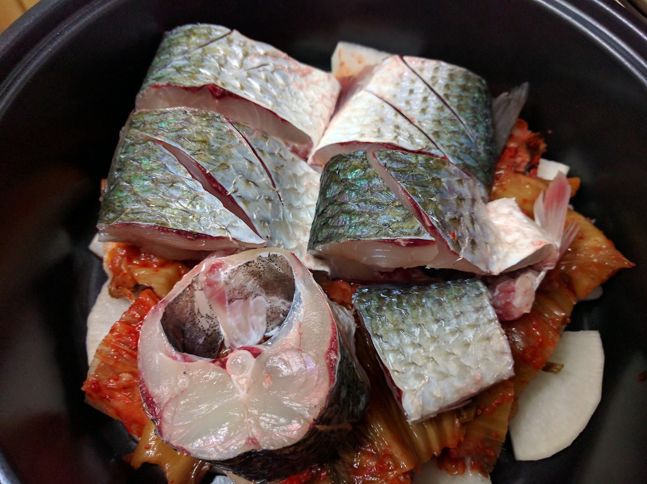 레시피는 고등어 김치찜과 비슷하게 했다.
