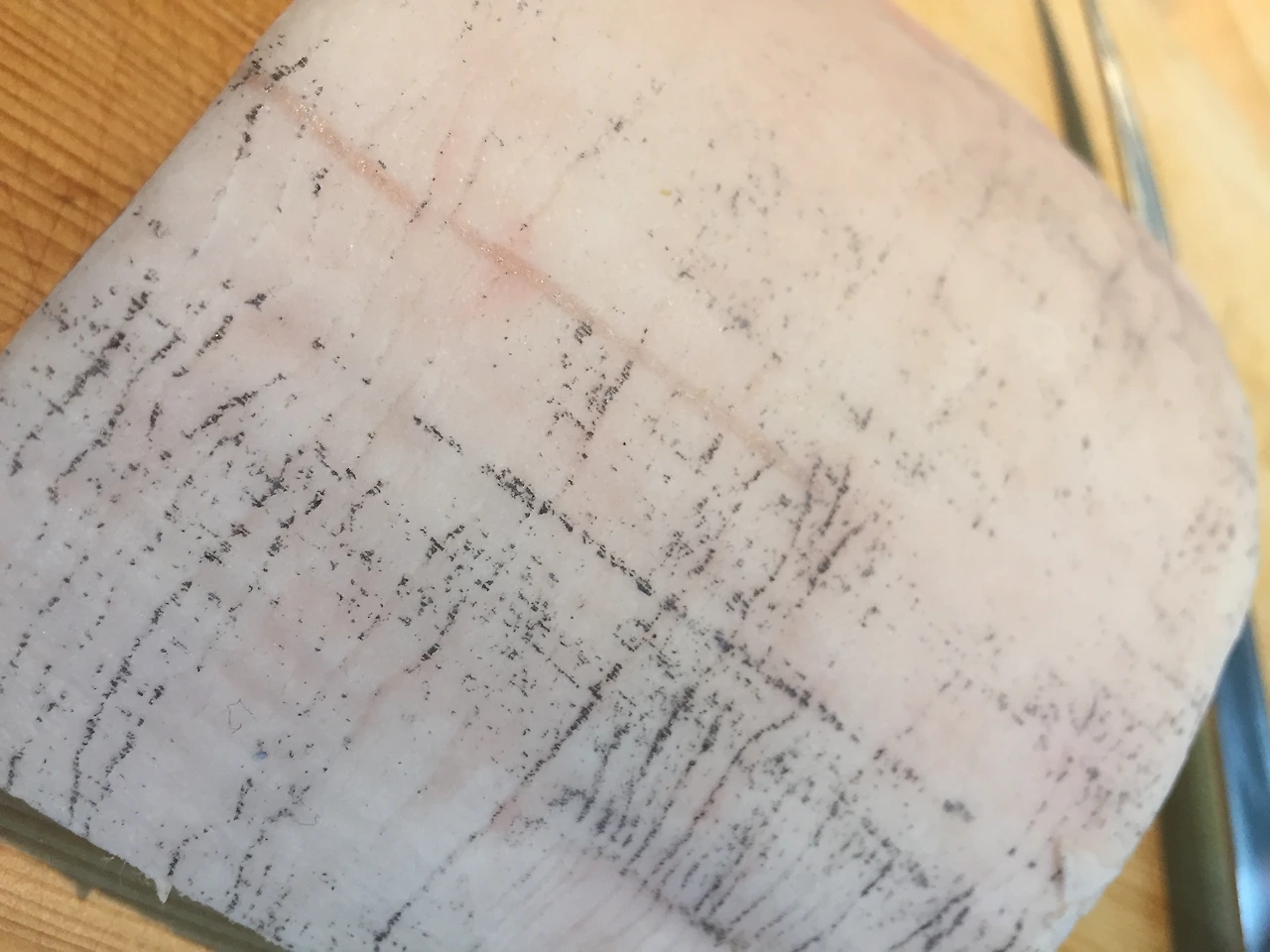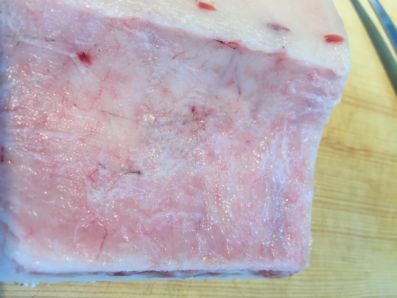이 부분이 피막인데 딱 봐도 먹기 싫게 생겼다. 구이로 먹기 위해선 이 부분을 칼로 제거할 때 약간 두툼하게 잘라내는 게 좋다.