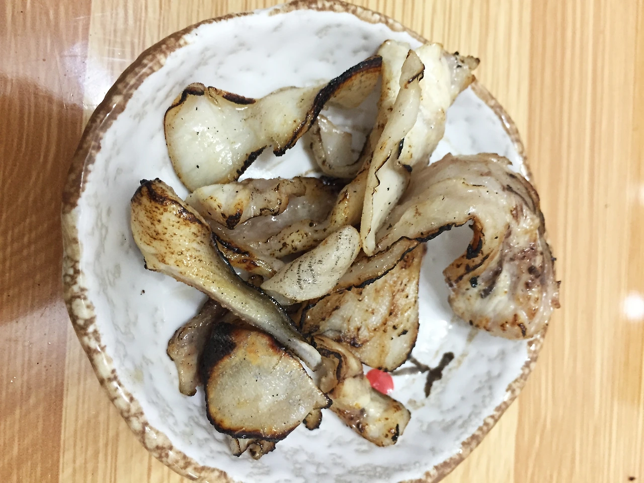 껍질은 바삭한 감자튀김 과자를 먹는 기분이고, 피막은 뭐랄까.. 아구찜의 아구껍질을 씹는 맛? 그것과 비슷하고 고소한 맛도 난다. 딱히 엄청 맛있다는 아니지만 별미로 먹어볼 만 하다. 그리고, 이 구이는 식으면 맛이 없으니 꼭 따뜻할 때 바로 먹어야 한다.