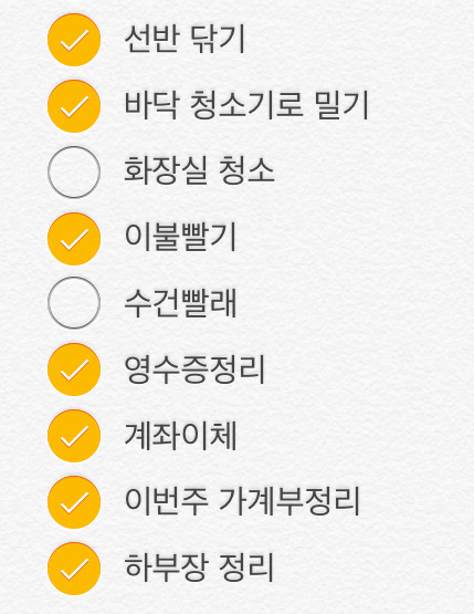 하지만 그럴 일은 일어나지 않지. 막상 시작하면 금방 끝날 일이지만 일어나기까지 마음을 먹는게 만만치 않다. 폰 메모장을 켜고 오늘 해야할 일 리스트를 쭉 쓰기 시작했다. 생각보다 많다. 더 하기 싫어졌다. 지금 시간이 1시 03분. 딱 1시 10분 되면 해야지. 11분이다. 15분 되면 해야지. 너무 힘들다 30분 되면 해야지. 으악 벌써 2시야! 더 꾸물대면 낮잠시간도 놓치고 집안일도 못하고 하루가 갈 것 같다. 얼른 일어나 이불부터 세탁기에 집어 넣었다.