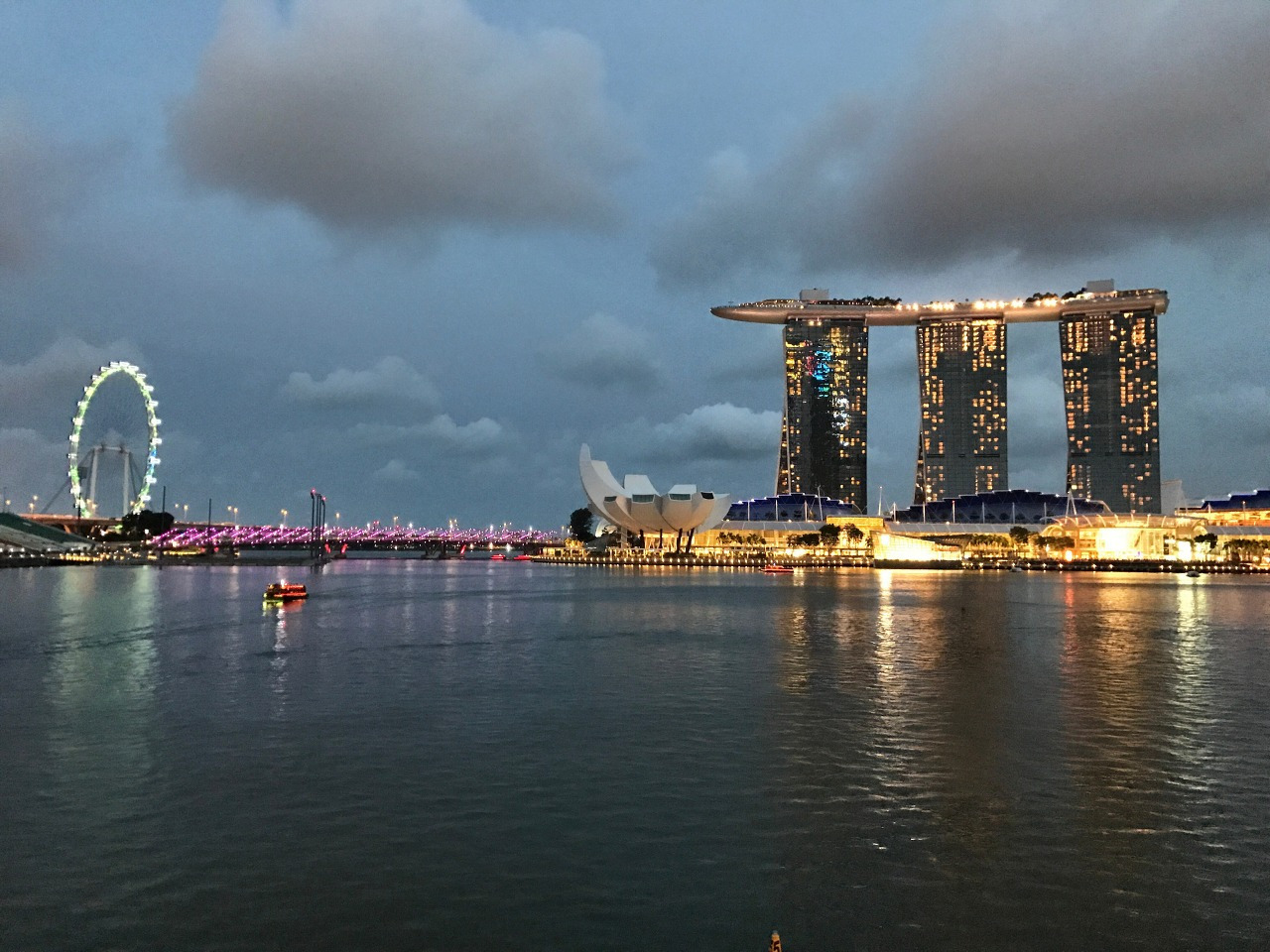 오전 9시에 인천공항에서 출발하는 항공편으로 싱가포르 창이 공항에 현지 시간 오후 2시 40분에 도착했다. 우리나라와의 시차가 1시간이지만 과거 영국 식민지 시절에 편의상 홍콩과 같은 기준시를 따르는 바람에 2시간 차이가 나는 베트남보다 더 멀리 떨어져 있어 약간의 차이는 느껴진다. 공항에서 택시를 타고 30분 정도 떨어진 파크 레지스 싱가포르 호텔로 가서 여장을 풀고 인접한 도심으로 나와 산책을 했다. 도심에서 불과 1Km 정도의 거리라 미리 이 호텔을 예약해 두었다. 거리를 구경하다가 길가에 있는 동방미식에서 중국 요리를 주문하여 맥주와 곁들여 저녁을 해결하고 싱가포르 야경을 보러 해안까지 걸어갔다. 옥상 수영장으로 유명한 선박 모양의 마리나 베이 샌즈 호텔의 멋진 광경에 매료되며 첫날 관광을 기분 좋게 마쳤다.