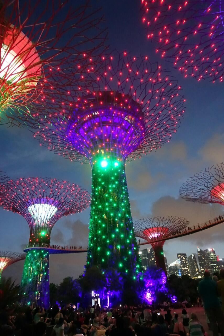 오후에는 지하철을 타고 오늘의 하이라이트인 일명 아바타 공원으로 유명한 가든스 바이더베이로 향했다. 오후 시간에는 공원 안에 있는 거대한 식물원인 클라우드 포레스트돔과 플라워돔에 입장해서 온갖 진귀한 나무들과 꽃들을 관람했다. 야외에는 엄청난 규모를 자랑하는 인공 나무와 조형물들로 가득 차 있어 야간에 펼쳐지는 화려한 조명쇼를 누워서 관람하는 색다른 체험도 만끽했다.