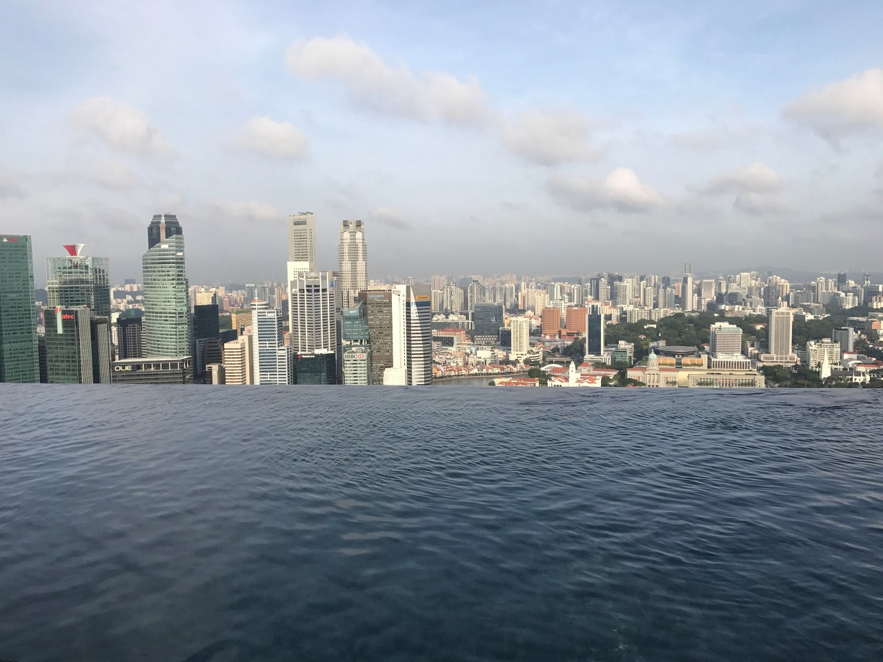 스튜디오 관광을 마치고 모노레일로 실로소 해변까지 가서 스카이라이더인 루지도 체험하면서 스릴을 만끽했다. 해변가 레스토랑에서 치킨과 곁들인 맥주를 즐기며 석양을 감상하고는 모노레일과 지하철을 이용해서 시내로 돌아왔다. 호텔로 들어오는 해변가 야외 식당에서 저녁을 해결하고 객실로 올라갔다. 하루 종일 돌아다니는 관광으로 피곤이 몰려 오지만 마리나베이샌즈 호텔의 명물인 수영장을 다녀오려고 옥상으로 올라갔다. 아찔한 유리 너머로 싱가포르의 야경이 보이는 옥상 수영장은 규모는 크지 않지만 마치 허공에 떠 있는 느낌으로 수영하는 체험이 이색적이었다.