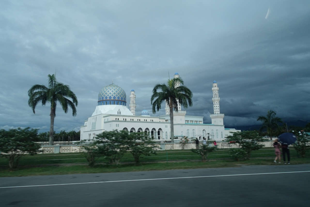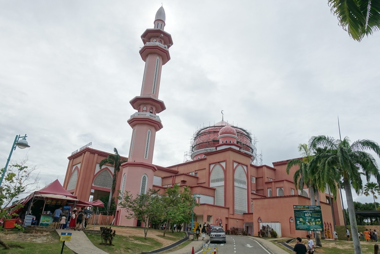 저녁 석양을 볼 시간이 많이 남아 그랩을 불러 차로 20분 거리에 있는 시내 외곽지의 핑크 모스크로 향했다. 사바 주립대학교 구내에 있는 핑크 모스크는 별도로 입장료를 내야 들어갈 수 있다. 온통 핑크빛으로 단장한 사원 건축물들이 여간 예쁘장한 게 아니다. 한참을 돌아다니며 사진을 찍은 후에 그랩을 불러 탄중아루 해변으로 석양을 보러 갔다.