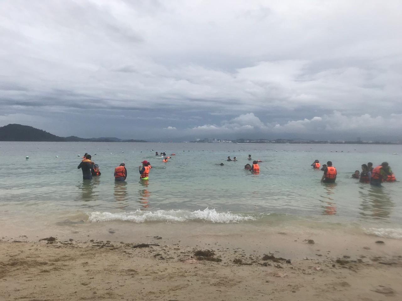 아침 일찍 일어나 짐을 정리해서 캐리어는 머큐어 호텔에 맡기고 제셀톤 선착장으로 갔다. 어제 예약해 놓은 호핑 투어를 위해 마무틱섬으로 20여분 배를 타고 가니 간이 선착장과 해안이 나왔다. 한국은 겨울인데 한여름 백사장처럼 관광객들로 붐비는 해안이 낯설었다. 시워킹(sea walking)을 하러 다시 배를 타고 가서 산호섬 주변에 도착했다. 상당한 무게의 수중 헬멧을 쓰고 바닷속을 구경하는 이색적인 체험이었다. 그림으로만 보던 니모도 보이고 각종 열대어들이 몰려다니는 장관도 물 속에서 그대로 볼 수 있었다. 다시 마무틱섬으로 돌아와서 애들은 패러세일링(parasailing)하러 가고 우리는 스노클링(snorkeling)으로 바닷속을 들여다보며 해수욕을 즐겼다. 얕은 바다인데도 팔뚝만한 고기들이 몰려다닌다. 오후 3시 배로 돌아가기로 예약이 되어 요기도 할 겸 해안가에 있는 레스토랑을 찾았다. 뷔페식당이 여러 군데 있었지만 이미 영업이 거의 끝나고 있어서 주문이 가능한 레스토랑을 갈 수밖에 없었는데, 의외로 현지 음식이 다양하게 메뉴에 있어 몇 가지 시켜서 먹어보니 상당히 괜찮았다.