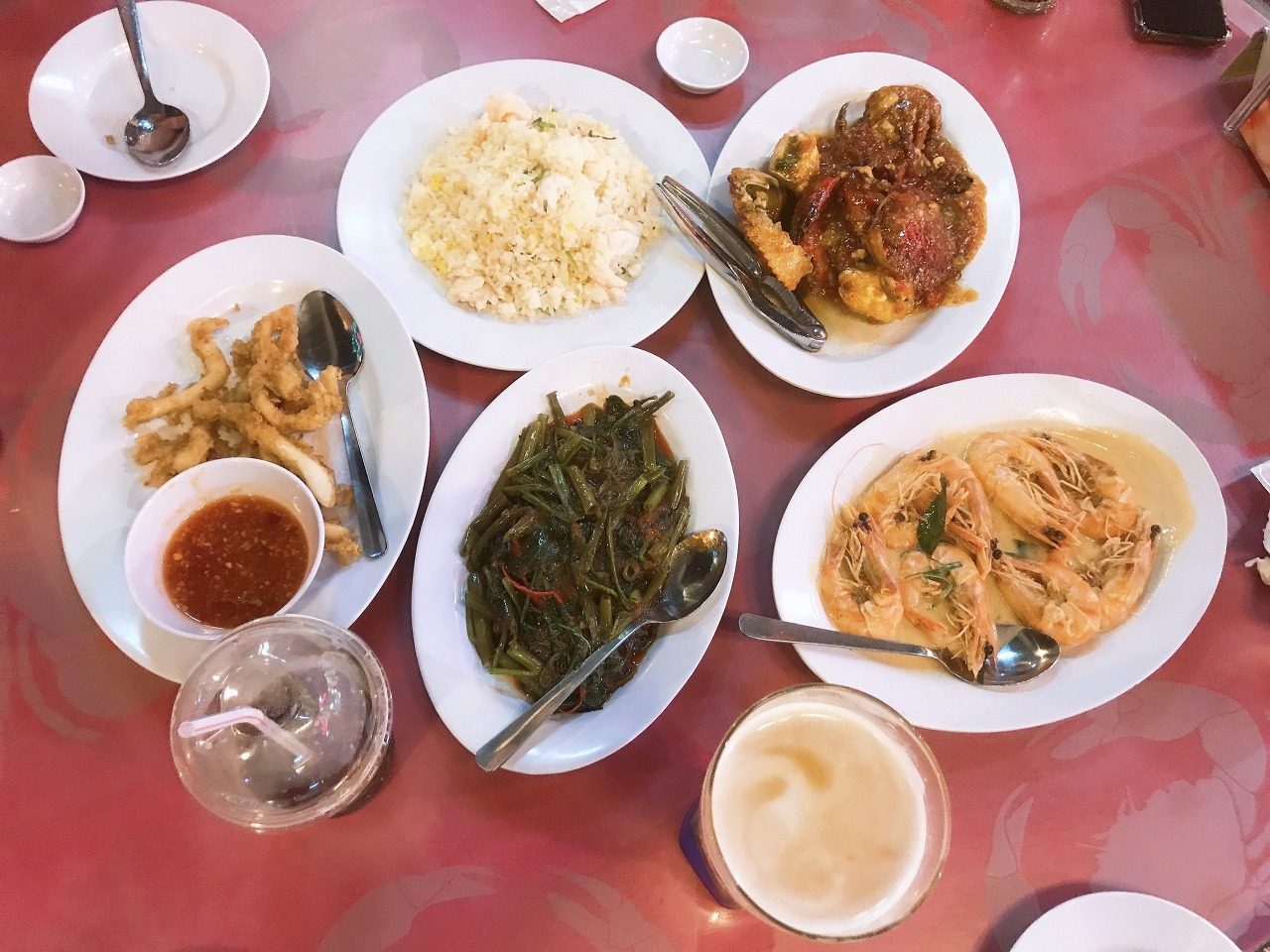 비가 간간히 뿌리는 바닷길로 다시 제셀톤 선착장으로 돌아와서 머큐어 호텔의 캐리어를 찾아 그랩을 불러 힐튼 호텔로 향했다. 어렵사리 두 개의 룸이 연결된 커넥티드 객실을 배정받아 짐을 풀고 휴식을 취했다. 저녁은 힐튼 호텔 바로 옆에 있는 웰컴시푸드 레스토랑에서 해산물 요리로 만찬을 즐겼다. 새우와 오징어 요리, 칠리크랩과 볶음밥 등으로 푸짐한 저녁을 맥주와 곁들이니 세상 부러울 게 없다. 저녁을 마친 후에 산책도 할 겸 어제 낮에 다녀왔던 필리피노 야시장으로 그랩을 불러 다시 갔다. 밤이 되니 차량도 엄청 많고 온통 관광객들로 붐비는 시장통 그대로였다. 물건을 파는 가게뿐 아니라 식당이 제법 넓게 차지하고 있어 망고를 좀 사고 커피와 주스 등을 마시고는 그랩을 타고 호텔로 돌아왔다.