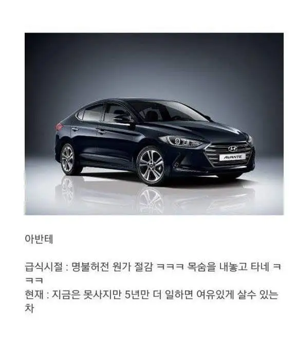 학창 시절에 제목과 같은 한 번씩은 생각해봤을 것 같다. 아반떼 뒤에 K5, 투싼, 싼타페, 그랜저, 제네시스, 그리고 현실까지 순서대로 이미지가 있다. 여러분들은 어떤가? 어렸을 때 봤던 차의 시선과 사회인이 되었을 때의 시선이, 물론 과장이 있는 부분도 있지만 어느 정도의 시선과 감정은 공감될 거라 생각한다.
