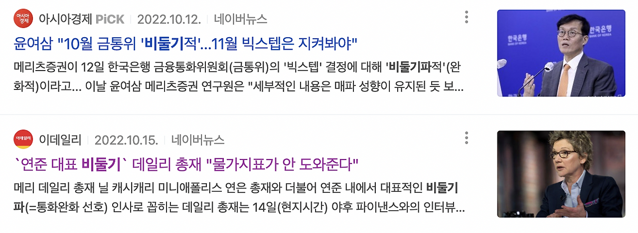 매파 강경파 : 물가 안정 위주 ( 인플레이션 억제, 금리 인상, 긴축 정책)