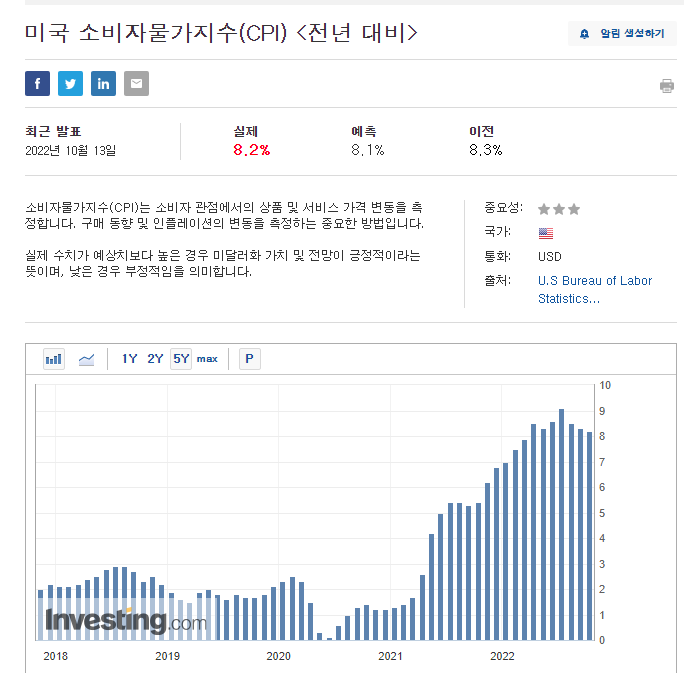 CPI : CPI는 미국 소비자물가지수로 미국 중요 경제지표 중 하나이다.