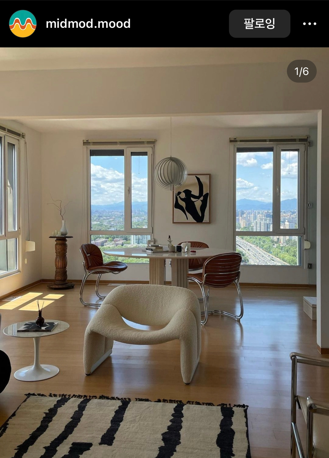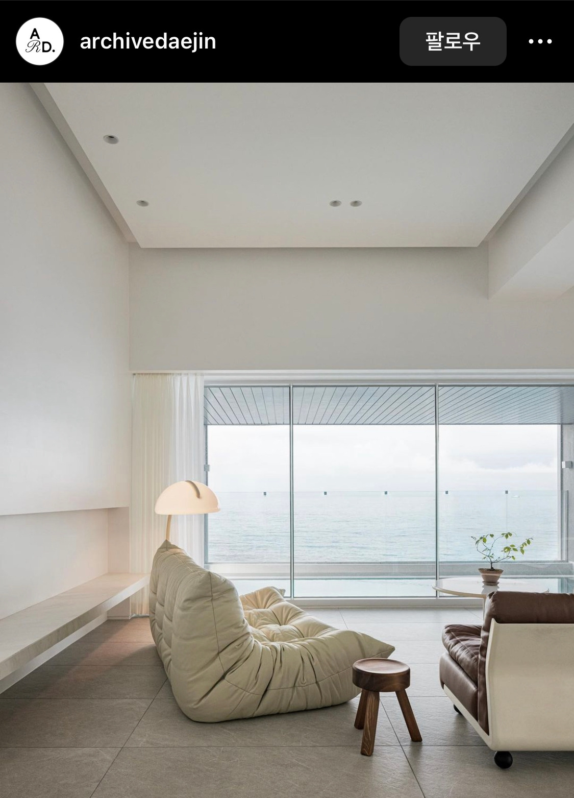 실측을 직접 재고 위와 같은 도면을 '크몽'에 맡겨 제작했습니다. 반셀프 시공을 할 것이기 때문에 시공자를 만날 때 커뮤니케이션을 하려면 아무래도 도면이 필요할 것 같아서요. 그리고 대략적으로 가구 배치 구성을 짜서 인테리어 래퍼런스를 알아보기 시작했습니다. 우선 영감은 '더글라스 하우스'에서 받았으니 전면에 뷰가 리버뷰나, 시티 뷰로 인테리어를 잘 한 공간을 인스타그램과, 핀터레스트로 계속 찾아보며 대략적으로 아래와 같은 이미지들을 찾고 참고했습니다.