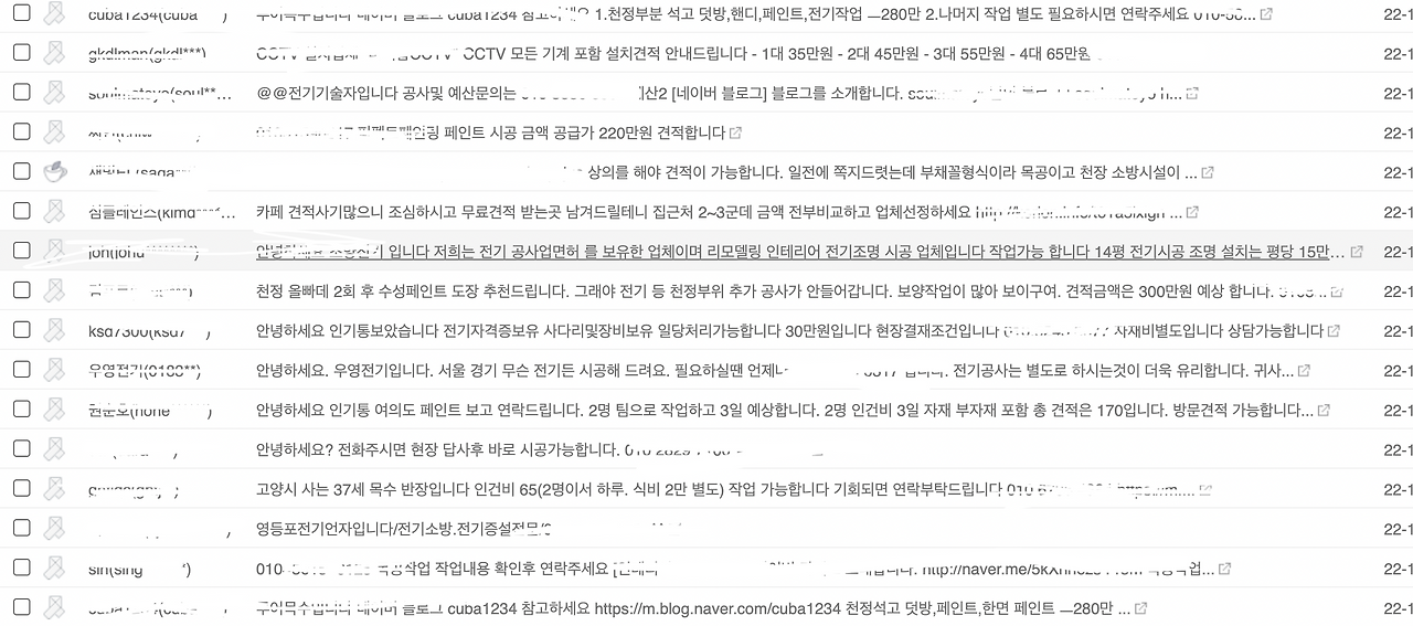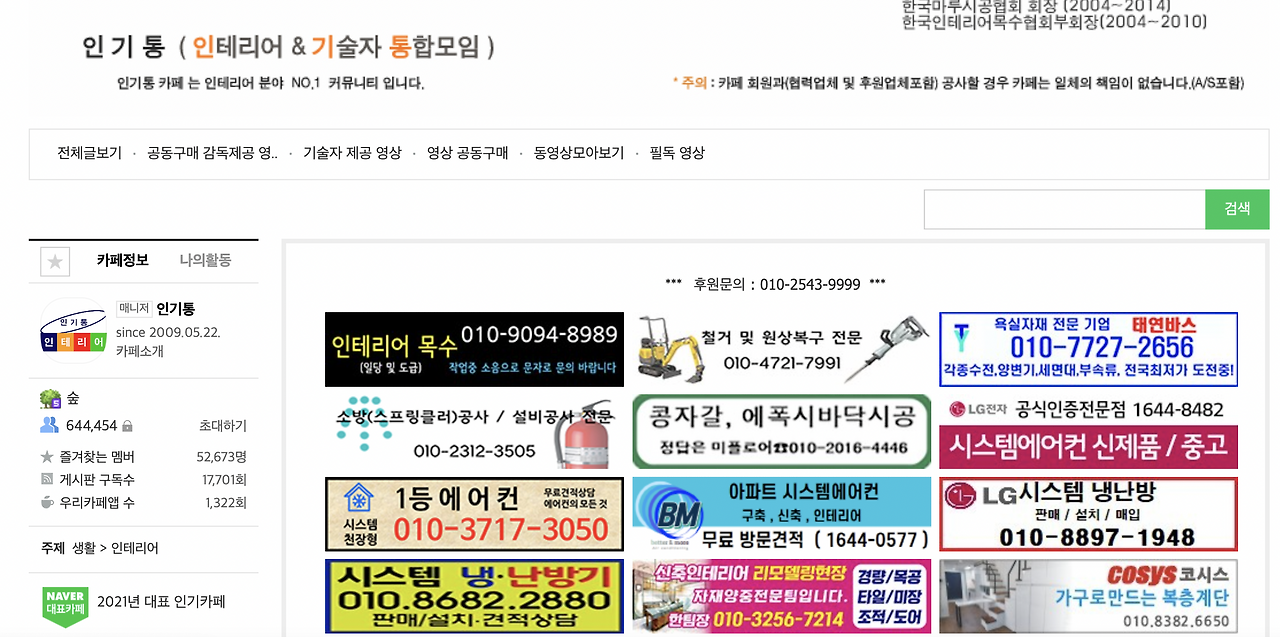 시공자 견적을 알아볼 때는 여러 가지 방법이 있지만 직접적이고 확실한 방법은 네이버 카페'인기 통'에서 직접 구하는 게시글을 올리고 전기/목공/페인트/바닥 등 각각 개별로 견적을 받는 것입니다.