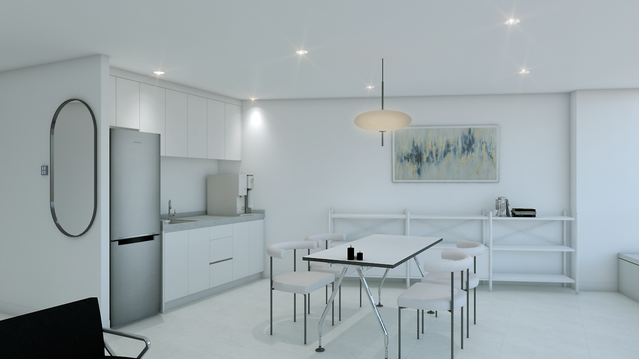 1차 랜더링으로 가구 배치가 안정적인걸 확인하고 랜더링을 요청해 아래와 같은 완성 디자인 작업물을 받았습니다. 여기서 알아두셔야 하는 건 크몽에 맡겨 작업한 것은 정말 작업뿐이지 원하는 디자인과 가구는 모두 직접 해야 됩니다. 그렇기 때문에 처음에 말했던 많은 래퍼런스와 어느 정도 공간에 대한 이해도가 있어야 완성도 있는 작업물이 나오니! 인테리어 작업 전 다양한 래퍼런스 체크와 공간의 이해도를 높이는 건 필수 입니다.