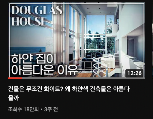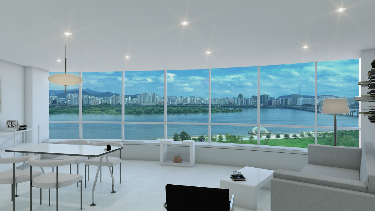 이전 글에서 말했다시피 이 공간의 장점은 여의도 한강공원 바로 앞 한강뷰였습니다. 그래서 이 뷰의 장점을 극대화하는 인테리어가 중요할 것 같다고 생각했던 즈음, 건축가 겸 교수로 계시는 유현준 교수님의 콘텐츠를 보게 되었습니다. 리처드 마이어의 더글라스 하우스를 다룬 콘텐츠였는데, 이 더글라스 하우스는 전면은 강, 뒷면은 산으로 되어있는 세계적인 건축물입니다. 저는 여기에서 영감을 받아 한강뷰에 집중되는 인테리어를 해보자 라는 생각을 하게 되었습니다.