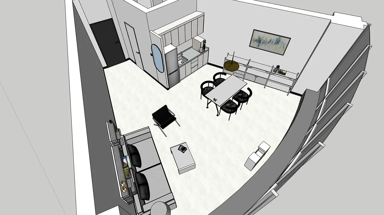 이와 같이 확인하고 대략 300~400 정도로 끊어보자 예상 후 레퍼런스와 가구 위치를 체크하여 대략적인 무드를 투시도로 잡았습니다. 이 작업도 도면제작을 해준 크몽에 맡겨 랜더링과 총 8만 원 금액을 투자했습니다.