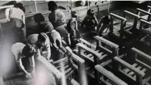 당시 교실바닥은 나무재질이라서 물왁스를 직접 구입해 책상을 앞으로 쭉 밀어 밀착시키고 아이들이 일렬로 쪼그려 앉아 닦던 시절이었다.
