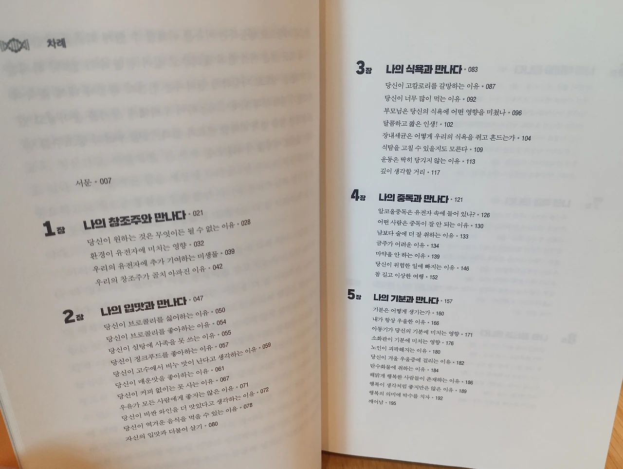 혹자는 ‘나’를 한낱 신체라고 말한다. 어느 정도 일리 있는 말이기도 하다. 『나를 나답게 만드는 것들』은 진화생물학, 뇌∙신경과학, 유전학 등 여러 생물학분야를 통해 ‘나’가 어떻게 형성되는지를 다룬다. 이 책이 다루는 주제가 얼마나 광범위한지는 목차를 보는 것으로 충분할 것같다.