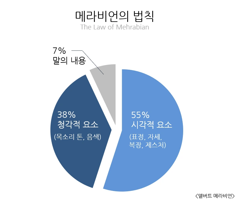 커뮤니케이션 분야에서 아주 유명한 메라비언의 법칙이 있다.