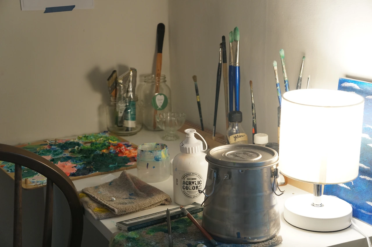 아뜰리에 리베는 학창 시절부터 꿈꿔온 이상적인 작업실이에요. 학교에서는 반 친구들과 작업실을 공유했는데, 정말 비좁고 자리를 두고 신경전도 벌어졌죠. 혼자 조용히 작업하고 싶어도 주변에 사람들이 있어서 온전히 집중하기 어려웠어요.