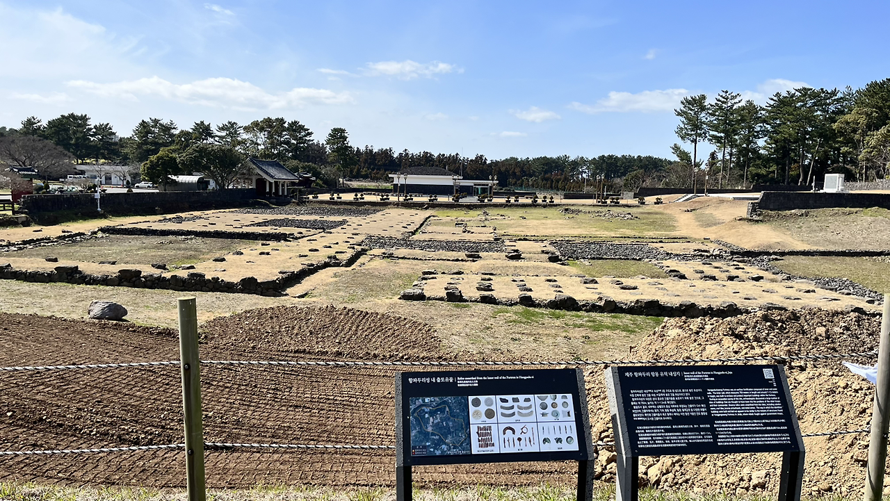오름을 넘어가서 고려말 대몽항쟁의 마지막 보루인 항파두성까지는 마을길을 따라 걷는다. 감귤밭이 자주 보이는데, 감귤을 수확하지 않아 그대로 말라 버려진 곳도 더러 있다. 농사지을 사람이 없어서 그런 건지, 수확해도 경제성이 없어서 그런 건지는 알 수가 없지만 괜스레 마음이 편치는 않다. 항파두성을 지나가니 항파두리 항몽유적지다. 800년 전, 처절했던 백성의 외침과 그들이 흘린 핏방울의 흔적은 오간데 없이 마른풀 위로 바람만 휩쓸어 간다.