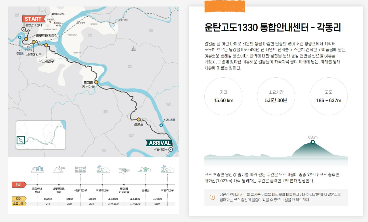1길 청령포~각동리 : 15.60km 5시간 30분 고도 186~637m