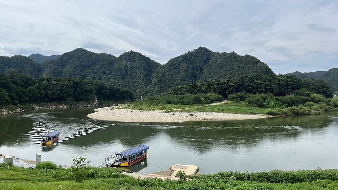 팔괴2리는 카누 타기로 유명하다는데 휴가철이 지나서인지 카누는 보이지 않는다. 거친 남한강이 이곳에서는 다소 얌전해진다. 강물이 흐르는 직선 방향 끝에 넓은 곳이 있어 여기서 물이 순해지고 왼쪽으로 꺾어지며 얕은 자갈을 따라 흐르면서 물보라를 일으키며 소란스럽다. 이 순하고 넓은 강물에서 카누를 타는 모양이다.