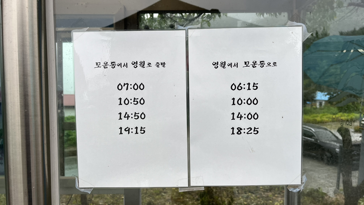 [아침 이동] 숙소(8:00)-<도보 5분>-예미역정류장-<20(함백), 08:37, 12분>-석항리정류장<22(녹전), 09:06, 40분>-주문교앞정류장<17, 10:26, 10분>