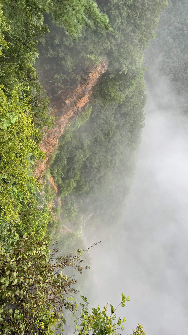 얼마 안 가 오른편으로 나무 계단을 오려면 황금폭포 전망대다. 이곳은 옥동광업소가 운영하던 옥동광산이 있던 폐광구 내부에서 흘러나온 물을 별도의 동력 없이 낙차를 이용해 이곳까지 끌고 와 만든 폭포가 황금폭도다. 갱도의 철분 성분으로 인해 물 빛깔이 황금색처럼 보이고 물이 흘러내리는 암석들도 황금빛으로 물들어 ‘황금폭포’라는 이름을 얻었다. 전망대에서 내려다보니 운무와 함께 깊은 계곡이 장관이다. 겨울철에는 얼어붙은 얼음벽이 볼만하다고 한다.