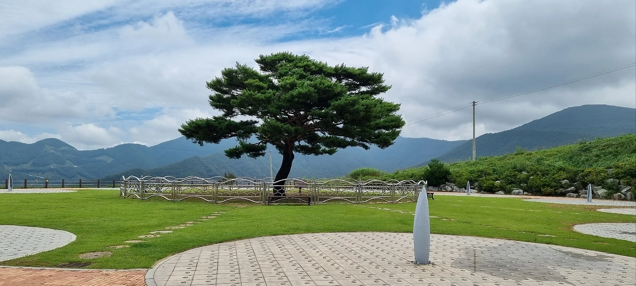 저 멀리 ‘엽기적인 그녀 소나무’가 있는 타임캡슐공원이 보인다. 타임캡슐공원은 정선군 질운산(1173m) 중턱 850m 높이 자리 잡고 있다. 주변은 온통 고랭지채소밭이 끝없이 펼쳐진다. 이곳은 2001년 개봉 영화 <엽기적인 그녀>의 촬영지다. 주연을 맡은 차태현(견우)과 전지현(엽기녀)이 이 엽기소나무 아래에서 목걸이와 편지를 담은 타임캡슐을 묻고 3년 후 다시 만날 것을 약속하는 그 장면을 촬영한 곳이다. 여기서는 지금도 타임캡슐을 대여하거나 구입해서 보관할 수 있다. 이용기간(100일~3년)에 따라 가격 차이가 난다(10,000~40,000원). 제때에 개봉되지 않는 타임캡슐이 얼마나 많을까 싶지만 그것도 나름이 추억이 아니겠나. 아띠엔 솔 카페에서 시원한 차 한 잔을 마시고 다시 출발.