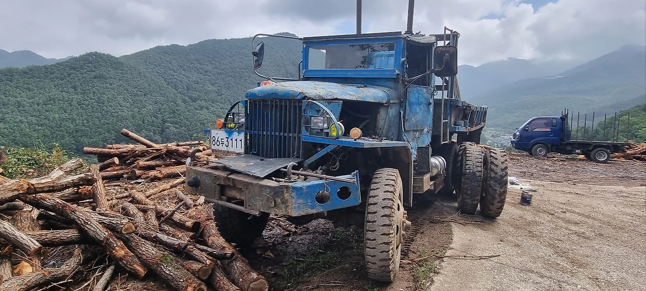 나중에 찾아보니 그 트럭은 미국 제너럴모터스(GMC)가 1940년대 이후 생산한 모델인데, GMC를 일본식 발음인 '제무시'로 불린 차종으로 힘이 좋기로 유명하단다. 벌채 작업장인 가파른 비포장 도로에서 나무를 싣는 용도로 운행되곤 했다는데 지금도 여전히 현역이다. 자식 같은 차에 대한 애정이 오래된 트럭에 생명의 숨을 불어넣고 있다. 멋지다.