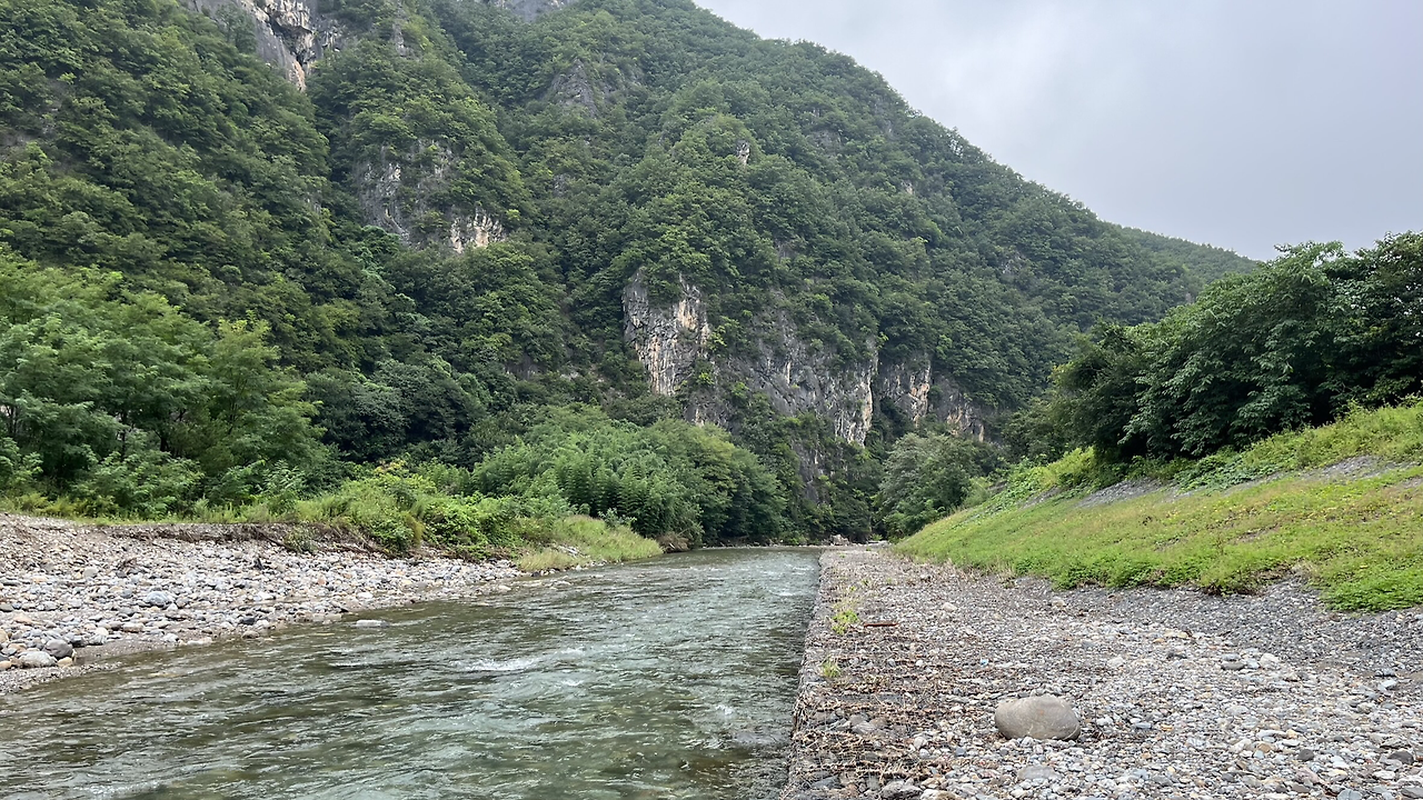 여기에서 마차리역(폐역)까지 4km는 그야말로 길을 만들면서 걷는다. 카카오 지도에서 알려주는 길과 간간이 있는 운탄고도 안내 표시판이 약간씩 달라져 주의해야 한다. 가다가 보면 길이 없거나 오십천을 건너야 하는데 징검다리에 물이 높아 건널 수 없거나, 풀이 많이 자라서 걸을 수가 없는 곳이 곳곳이다.