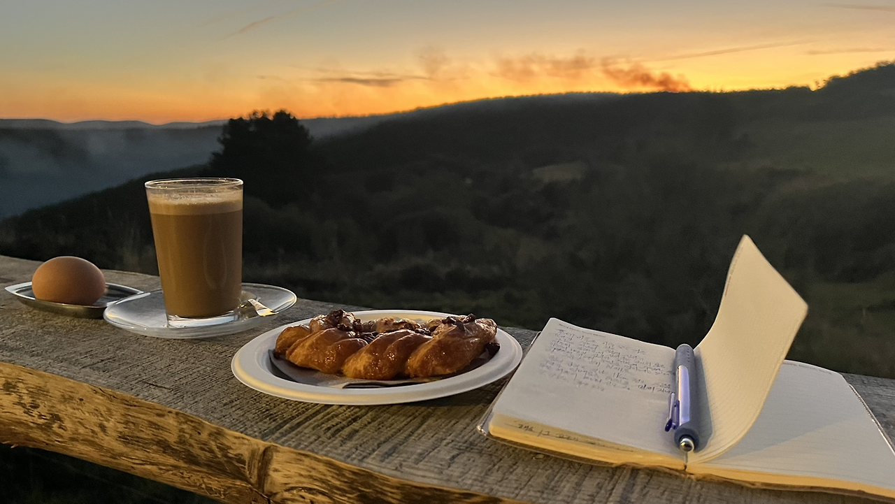 폰세바돈에서 엘 아세보 데 산 미구엘(El Acebo de san Miguel)까지 11.5km 구간에는 카페도, 쉴만한 곳이 따로 없는데 이 푸드트럭이 유일하다. 푸드트럭에 앉아 있으니 해가 밝아 온다. 커피와 달걀, 빵 하나를 사서 먹는데, 강아지 녀석이 옆에 앉아 가만히 올려다본다. 푸드트럭 주인이 강아지가 달걀을 아주 좋아한다고 한마디 거든다. 내 달걀의 반은 녀석이 먹었다. 이제 없다고 손을 탈탈 털어 보여 줬더니 다음 사람 곁으로 가서 똑같은 행동을 한다. 선수다.