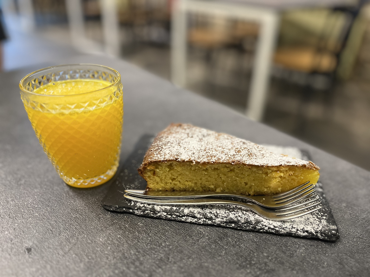 네이로(Neiro) 근처, 11.3km를 세 시간이 걸렸다. 아침 식사 후에는 한 번도 쉬지 않아, 길가에 근사한 카페가(Casa de Amencio) 있어 잠시 쉬어 간다. 카스테라가 부드럽고 맛있다. 카스테라를 담아내어 주는 돌 접시가 인상적이다. 젊은 주인 아가씨의 센스가 느껴진다.