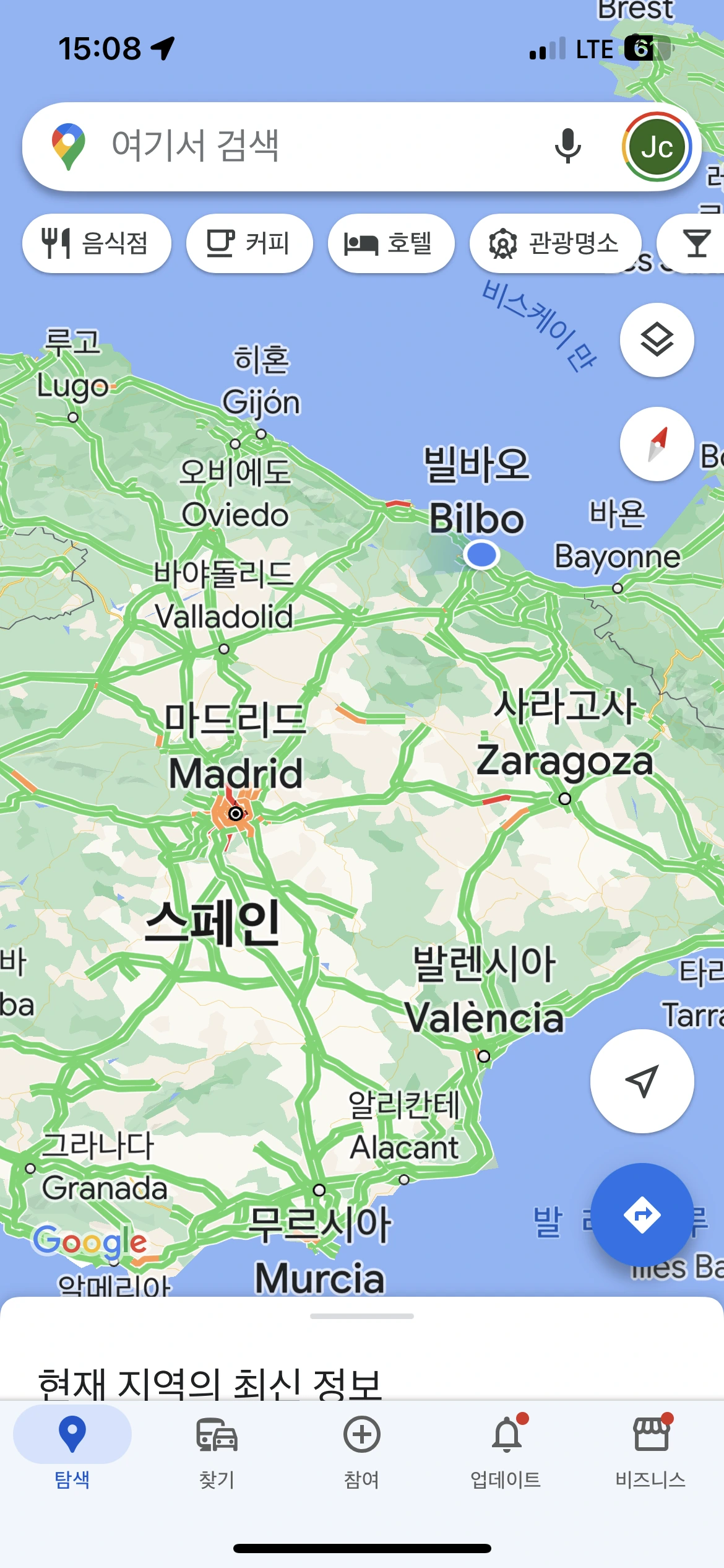 이동 : 산티아고 데 콤포스텔라~빌바오, 항공, 80분