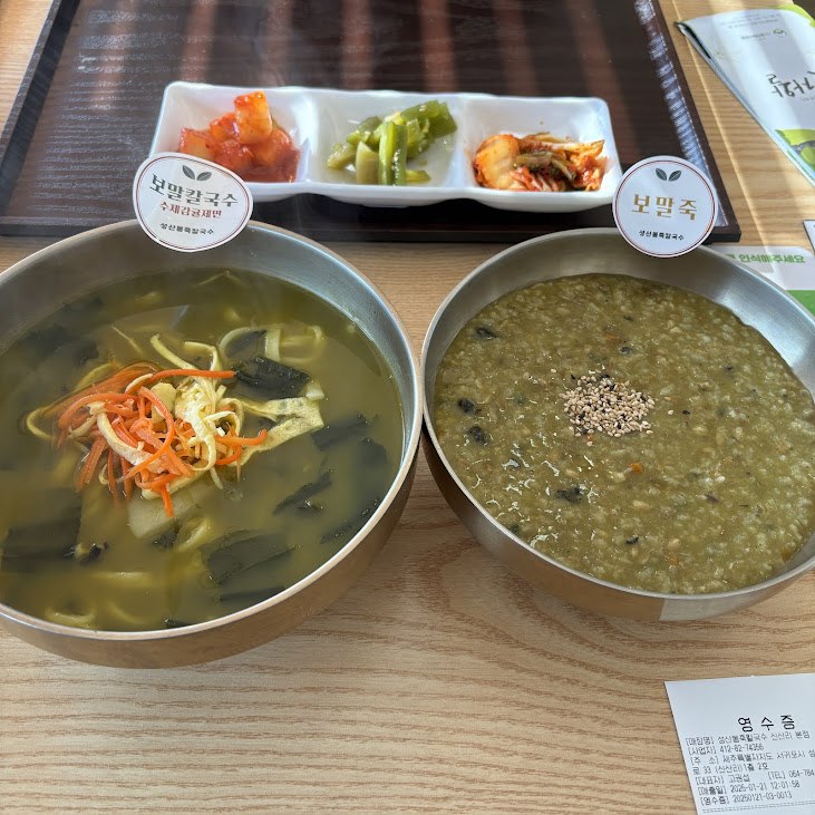 오늘 점심 메뉴는 보말죽과 보말칼국수, 신산리 마을카페가 있던 자리에 [성산봄죽칼국수]이 생겼다. 나이 지긋한 마을주민들이 운영하는 곳인지 주방에도 홀에도 그런 분들이다. 네이버에 후기를 적으면 감귤주스를 준다길래 사진도 찍고 후기를 남겼다.