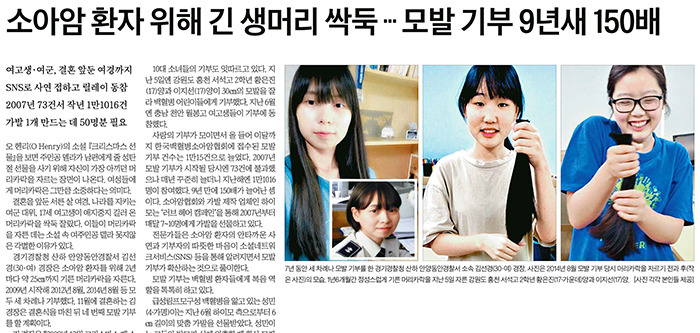 오늘 날짜(2018.3.20)로 인터넷에서 '기부'라는 키워드로 뉴스를 검색해 봤다. '장애인에게 스포츠 마사지 재능기부, 영동 박수원 씨', ' 20년 강연료 3000만 원을 해군장학재단에 기부한 해군 노병', ' 전남 드레곤즈 박광일, 김영욱이 지역 아동복지 시설에 기부', ' 컴백 워너원, 소녀교육에 1억 원 기부' , ' 88자원봉사대 조건환경개선 재능기부 앞장, '계근단 김부경 중위, 2년간 기른 모발 25cm 한국백혈병소아암협회 기부' 등 기부의 내용과 형태가 각양각색이다. 어렵게 번 돈을 기부하는 사람, 자신이 가지고 있는 재능을 남을 돕는데 쓰는 사람, 소중히 기른 머리카락을 기부하는 여군 등.