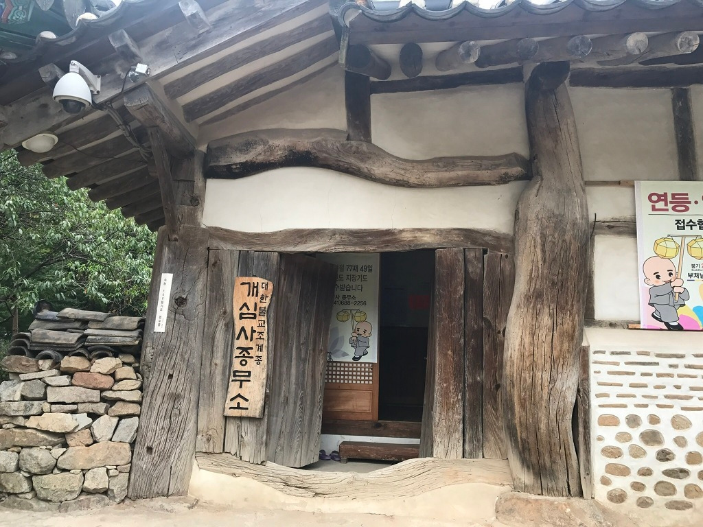 삼존불 주차장에서 개심사로 가는 길은 두 가지다. 걸어서 산을 바로 넘어가는 길과(4km, 90분), 차로 산을 돌아가는 길이다 (13km, 20분). 절 입구에는 여느 절과 마찬가지로 식당들과 약초를 파는 할머니들이 있다. 그 광경을 유심히 살펴보면 그 절의 상황을 짐작할 수 있다. 사람들이 많이 찾는 유명한 곳인지, 아니면 조용하고 한적한 절인지 표시가 난다. 개심사는 후자다. 일주문은 새로 지은 지 얼마 되지 않은 듯 기단의 화강암이 깨끗하고 기둥과 천장의 채색이 선명하다. 일주문을 지나 포장된 길을 500여 미터 올라가면 거기서 부터는 돌계단이다. 숲과 개울과 어우러진 돌계단이 운치가 있다.