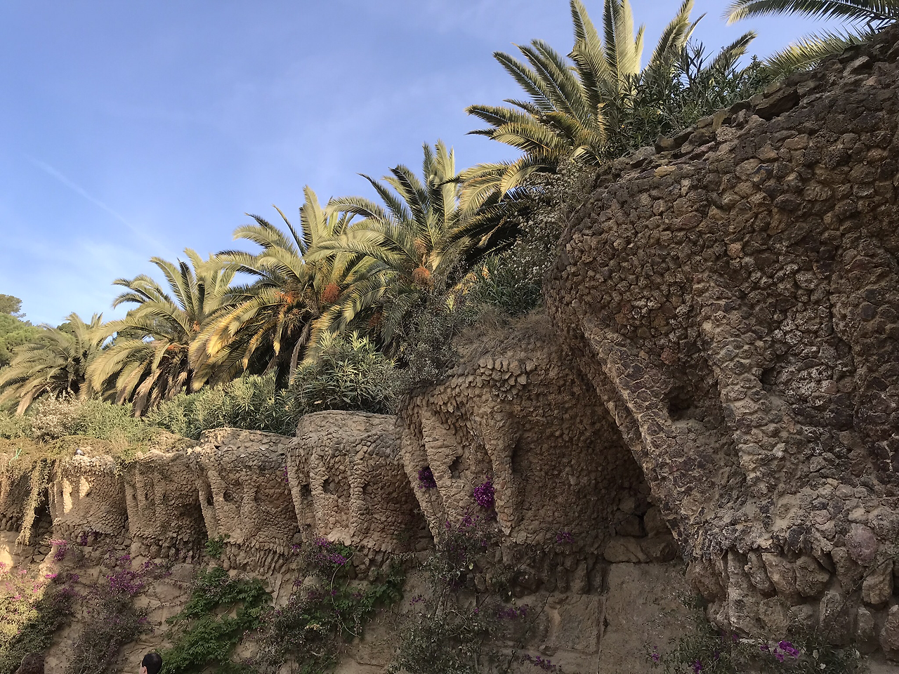 구엘공원에서는 그동안 보지 못했던 한국인 단체 관광객이 많이 보였다. 가이드의 안내에 따라 바로 유로존으로 향하는 그룹도 있고, 무료존을 구경하고 바삐 유로존으로 가는 그룹도 있다. 언제부터인가 유료존이 따로 생겼다고 한다. 무료존은 소박하다. 거기 원래부터 있던 나무와 돌들. 상상력이 풍부한 한 인간에 의해 자연은 또 다른 모습의 자연으로 태어나 사람들을 끌어당긴다. 반면에 유로존은 색색의 타일이 사람들의 상상력을 자극한다. 무료존은 산책로다. 잘 정돈된 길을 따라 언덕 꼭대기까지 올라갔다. 바르셀로나 시내가 한눈에 들어온다. 반대편에 어제 가 본, 카탈로니아 미술관과 몬주익 성이 보인다. 내일 다시 아침 일찍 오기로 하고, 언덕 위에서 내려와 유로존 바깥을 돌아 나왔다.