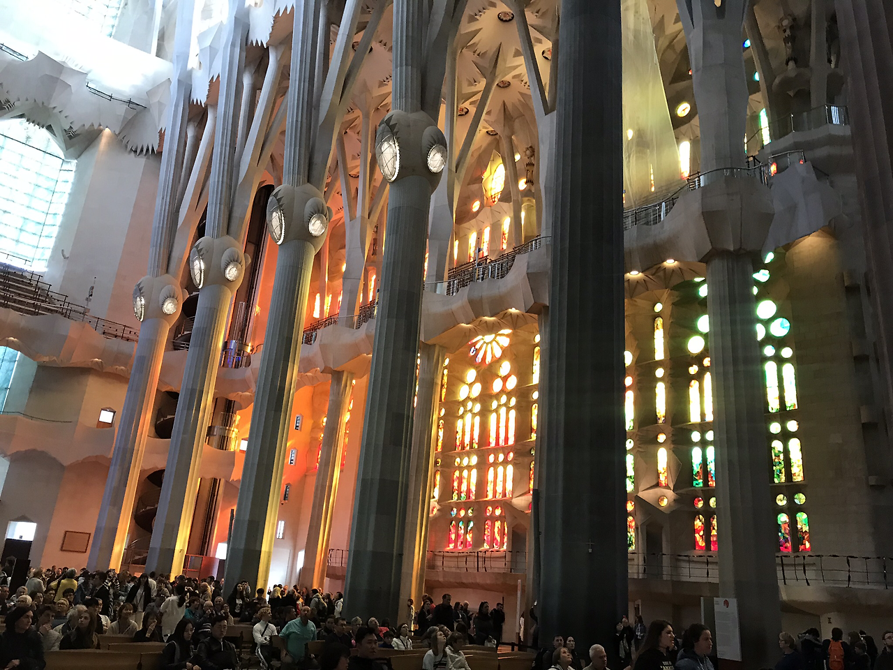 성당 바깥의 모습도 놀랍지만 성당 내부에 들어오니 충격이 더하다. 올려다 보는 내내 입을 다물 수가 없었다. 나 뿐만아니라 성당안의 모든 사람들이 그저 천정을 올려다보고 있다. 무슨 말로, 무슨 글로 표현할 수 있으랴. 제각각 제 나라 말로 자아내는 탄성은 다르지만, 모두가 느끼는 바는 다르지 않다. 30미터 이상 높이 솟은 기둥과 천장, 화려한 스테인드 그라스, 곡선과 직선, 강인함과 부드러움이 성당 내부를 휘감는다. 한동안 치켜든 고개를 내려놓을 수가 없다.