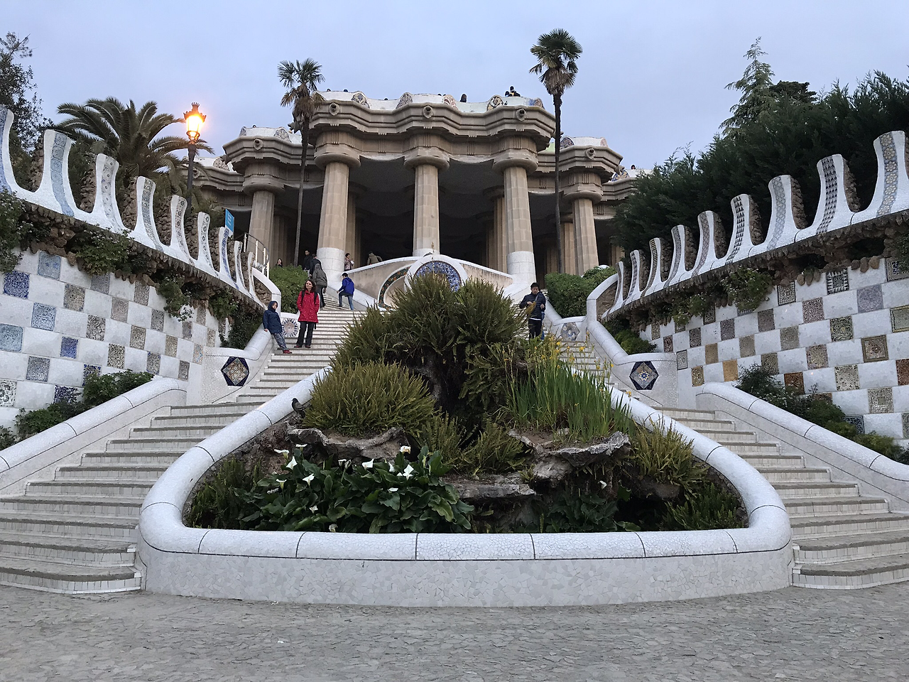 오늘은 어제 관람을 하지 못한 구엘공원 유료존을 무료로 관람하기로 했다. 서둘러야 한다. 오전 8시 전에는 유로존 내에 있어야 하기 때문이다. 근데 너무 서둘렀나? 나이 들면 잠이 없어진다고는 하지만 방콕에서 학교에 출근하듯이 5시에 일어나 부산을 떨었다. 오늘 3일간의 바르셀로나 일정을 마치면 마드리드행 비행기를 탈 것이다. 6시 반에 호텔에서 체크아웃, 가방만 맡겨두고 버스를 탔다. 아직 새벽의 여명도 오기 전이라 깜깜하다. 어둠 사이로 번져오는 새벽 공기가 상쾌하다. 버스에서 내려 가로등의 불빛을 밟으며 500미터쯤 걸어 올라갔다. 우리가 1등! 어라, 우리보다 먼저 온 사람들이 있다.