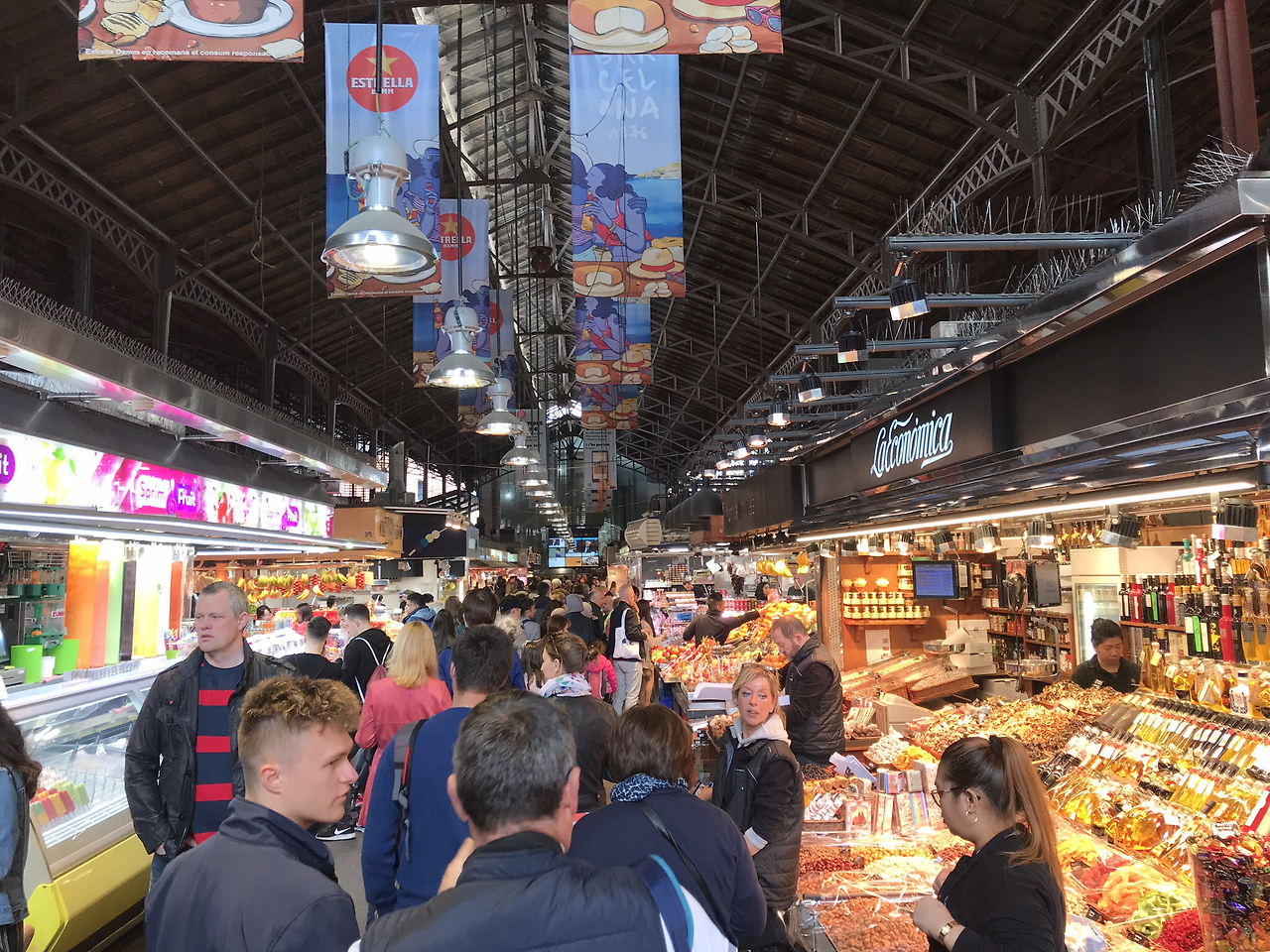 특히 벨라스케즈의 작품 ‘시녀들(Las Meninas)’을 응용한 연작을 비롯하여, 마드리드 미술대전에서 호평을 받은 ‘과학과 자비’ 같은 작품들이 눈에 익었다. 기념품 샵에서 ‘모자를 쓴 여인’과 ‘시녀들’ 작은 그림 두 장을 샀다. 꼬꼬핀으로 벽에 걸어두면 삶이 때때로 참 우아해진다. 미술관을 나와 골목길을 따라 바르셀로나 시청사, 가우디가 딸랑 두 개의 가로등만 만들어 세웠다는 레이알 광장을 거쳐 람블라스 거리에 있는 라 보케리아 시장으로 갔다. 쉬엄쉬엄 걸어가도 30분이 채 걸리지 않는 거리다.