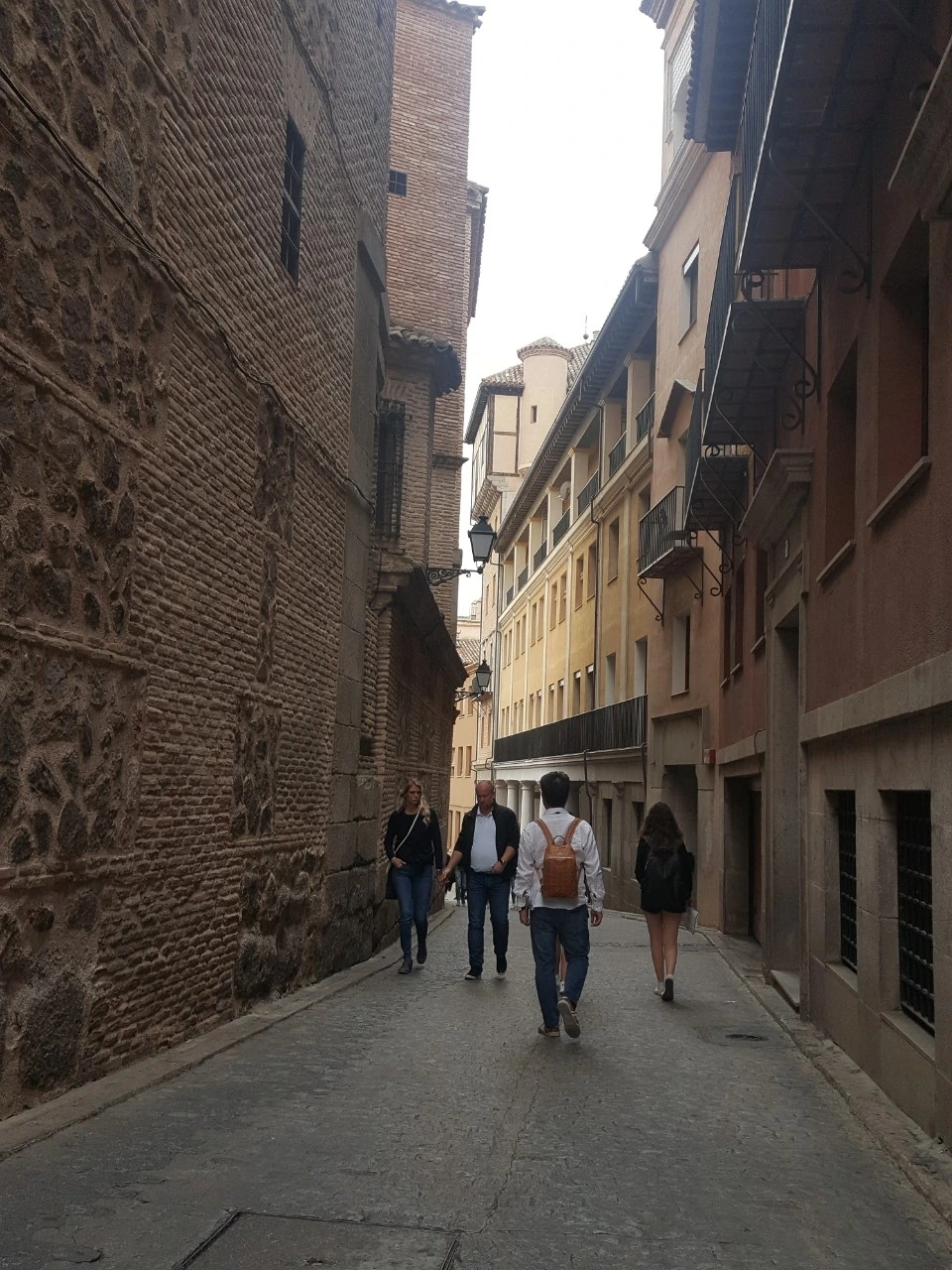 걸어서 관광을 하려던 계획을 바꾸어, 버스를 타고 톨레도의 가장 높은 곳(버스 종점)까지 간 다음에 천천히 내려오면서 둘러보기로 했다. 역 앞에는 거의 대부분의 버스가 온다. 종점까지 가는데도 15분 정도 걸리니, 이 도시가 얼마나 소박한 크기인지 짐작할 수 있다. 제일 높은 곳에 있다는 알카사르(Alcazar)에서부터 골목길을 따라 천천히 내려오면서 대성당, 박물관, 산 마르틴 다리를 둘러봤다. 특별히 어디를 꼭 봐야 하는 곳이 있는 것도 아니다. 이 도시의 매력은 느리게 가는 시간이다. 천천히 걸으며 오래된 벽돌과 건물, 계곡을 따라 흐르는 물, 그 건너 넓게 펼쳐진 들을 느긋하게 바라보는 것이 이곳에서 할 수 있는 일의 전부다. 좁을 골목 끝 어딘가에서 문득 만나게 되는 공터 카페에 앉아 맥주 한 잔을 홀짝이면 시간은 더 느리게 간다.
