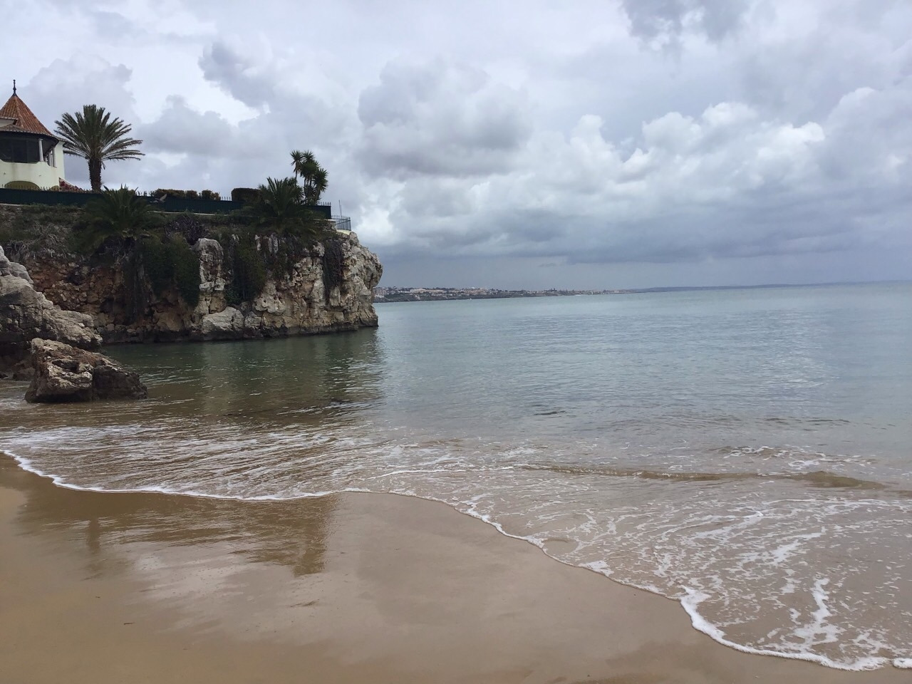 이제 돌아갈 시간이다. 여기서 신트라로 되돌아가는 길이 있고, 남쪽 해안 도시인 카스카이스(Cascais)로 가는 방법이 있다. 같은 번호인 403번 버스 노선이 두 개다. 신트라로 되돌아 가지 않고 카스카이스로 가는 버스를 탔다. 신트라로 가는 것보다는 길이 좋다. 30분이 채 못되어 카스카이스 버스 터미널에 도착했다. 도시가 작아 버스터미널 바로 맞은편에 역이 있다. 터미널에서 역을 지나 해변가로 가는 길이 예쁘다. 작은 기념품 가게, 카페, 길거리 버스킹, 침대보를 파는 아프리카 여자들도 이국의 정취를 한껏 느끼게 해 준다. 골목길을 벗어나자 파란 하늘과 바다, 하얀 모래사장이 눈에 들어온다. 저 멀리 선창가에는 작은 배들이 돛을 접은 채 정박해 있다. 그림같이 작고 예쁜 해변이다.