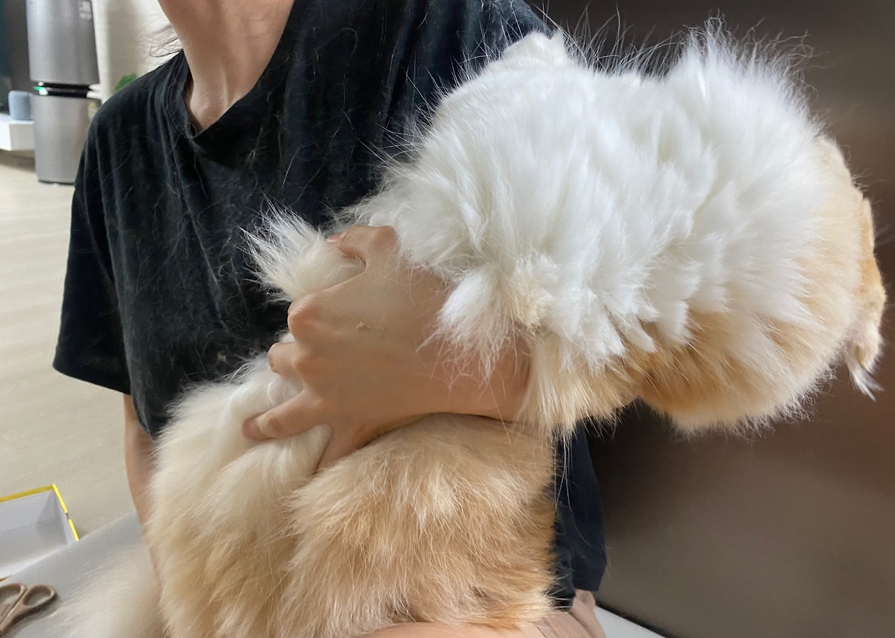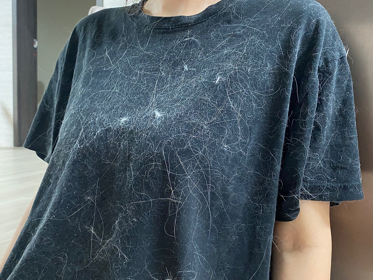 이것은 그날의 흔적. 털이 어마어마하다. 나는 왜 하필 검은 옷을 입고 있었던 걸까? 목이 늘어진 추레한 티셔츠가 그날의 고단함을 말해준다.(하하)