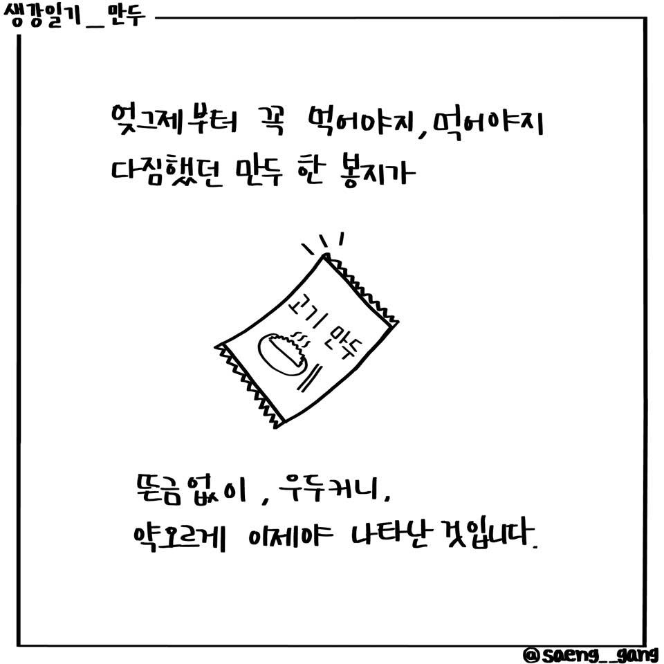 ‘나는 왜 만두 봉지를 발견하지 못했는가.’부터 시작해서 어쩌자고 밥을 그렇게 많이 먹었는가에 대한 약간의 후회까지 밀려왔었거든요.