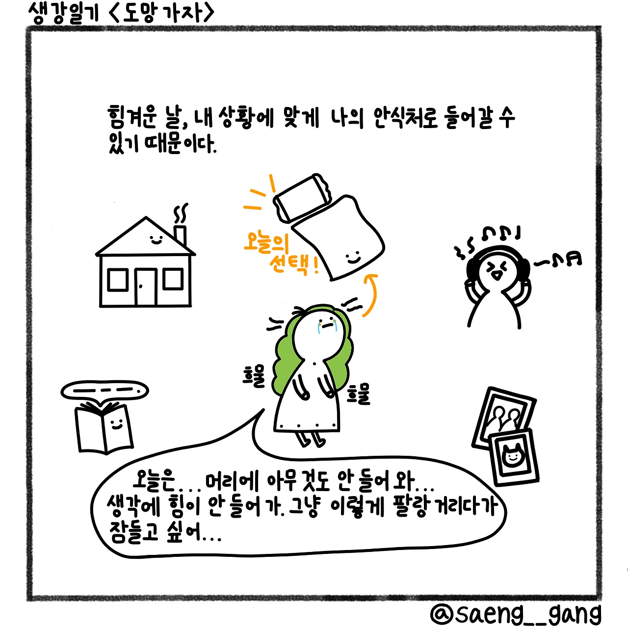 난 여러 갈래 길에서 고민하다가 지금 내가 갈 수 있고 가고 싶은 길로 도망쳐.