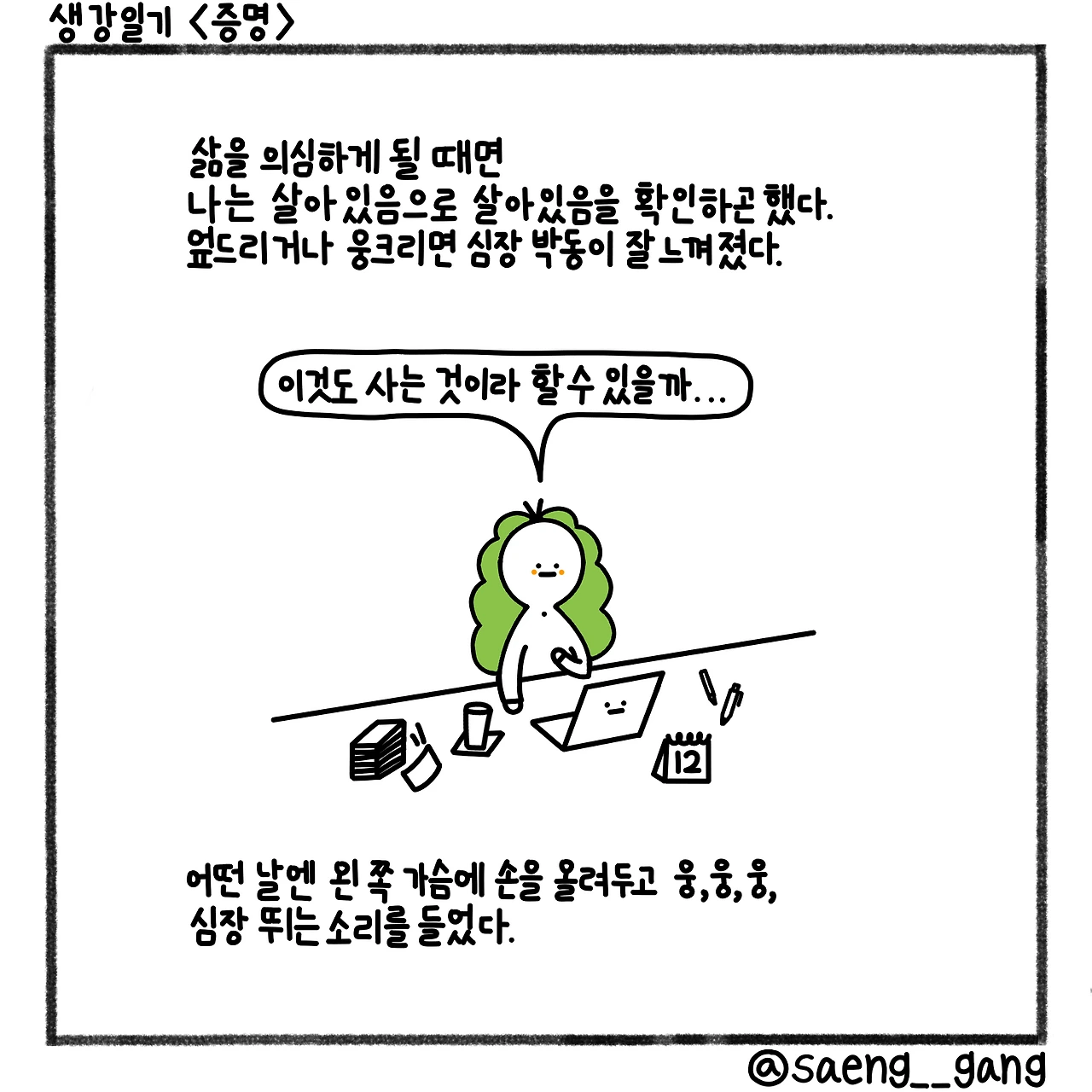 이렇게 살아도 사는 것이라 할 수 있을까. 나의 열심과 능력, 크게는 삶을 의심하게 될 때면 심장 소리를 듣는다. 웅웅웅, 심장은 ‘이렇게 살아도’ 살아 있다는 사실을 증명해 준다.
