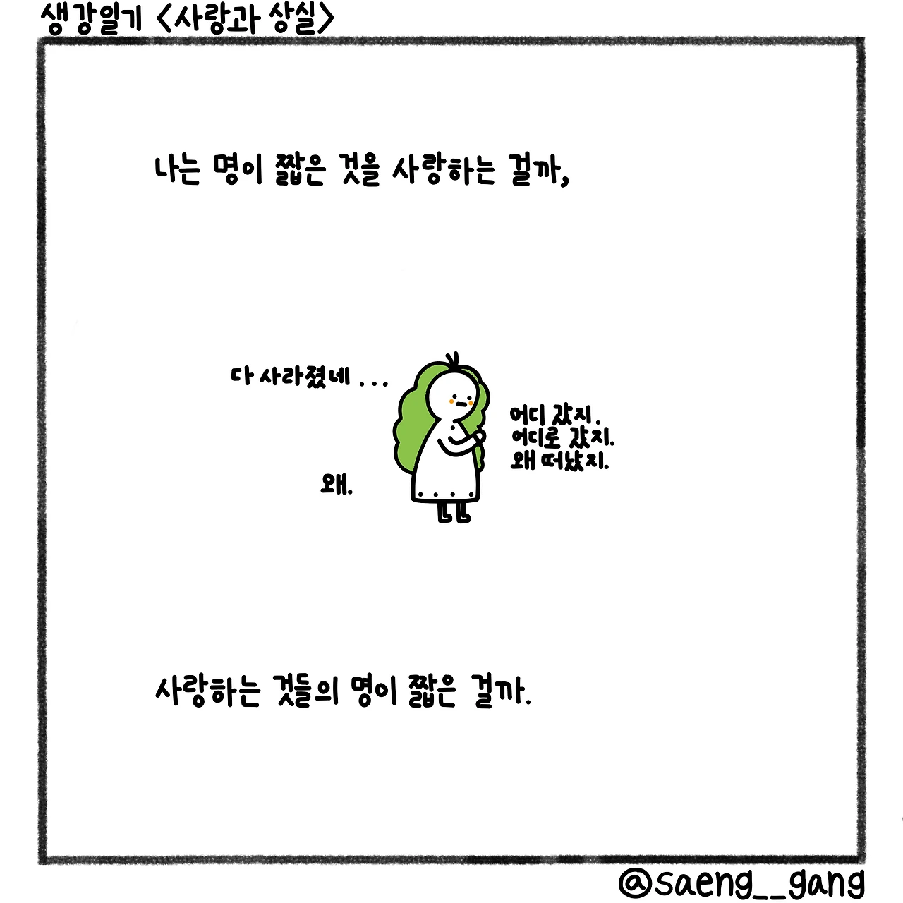 나는 명이 짧은 것을 사랑하는 것인가, 내가 사랑한 것들이 빨리 떠나는 것인가. 나는 그런 것들만 족족 사랑하는 건가.