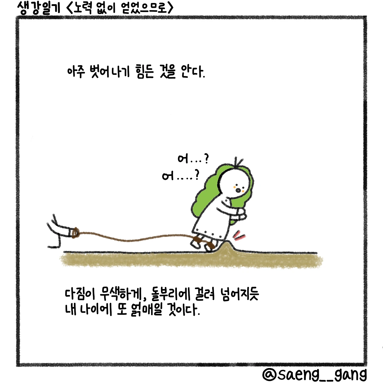 이렇게 말해 놓고 나이 앞에 넘어져도 민망해하지 말아야지. 그런 생각을 한다. 넘어지고 얽매여도 시선은 정면에 두고 내가 노력해서 얻은 것들을 손에 꼭 쥐고 걸어가야지.